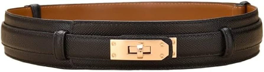 Eleganter Taillengürtel aus Leder mit markanter, goldfarbener Drehschließe. Die klare Linienführung und die fein strukturierte Oberfläche verleihen dem Design eine hochwertige Ausstrahlung. Ideal, um Silhouetten zu definieren und Looks gezielt zu akzentuieren. Ein stilvolles Accessoire für anspruchsvolle Kombinationen – zeitlos, souverän und vielseitig einsetzbar.