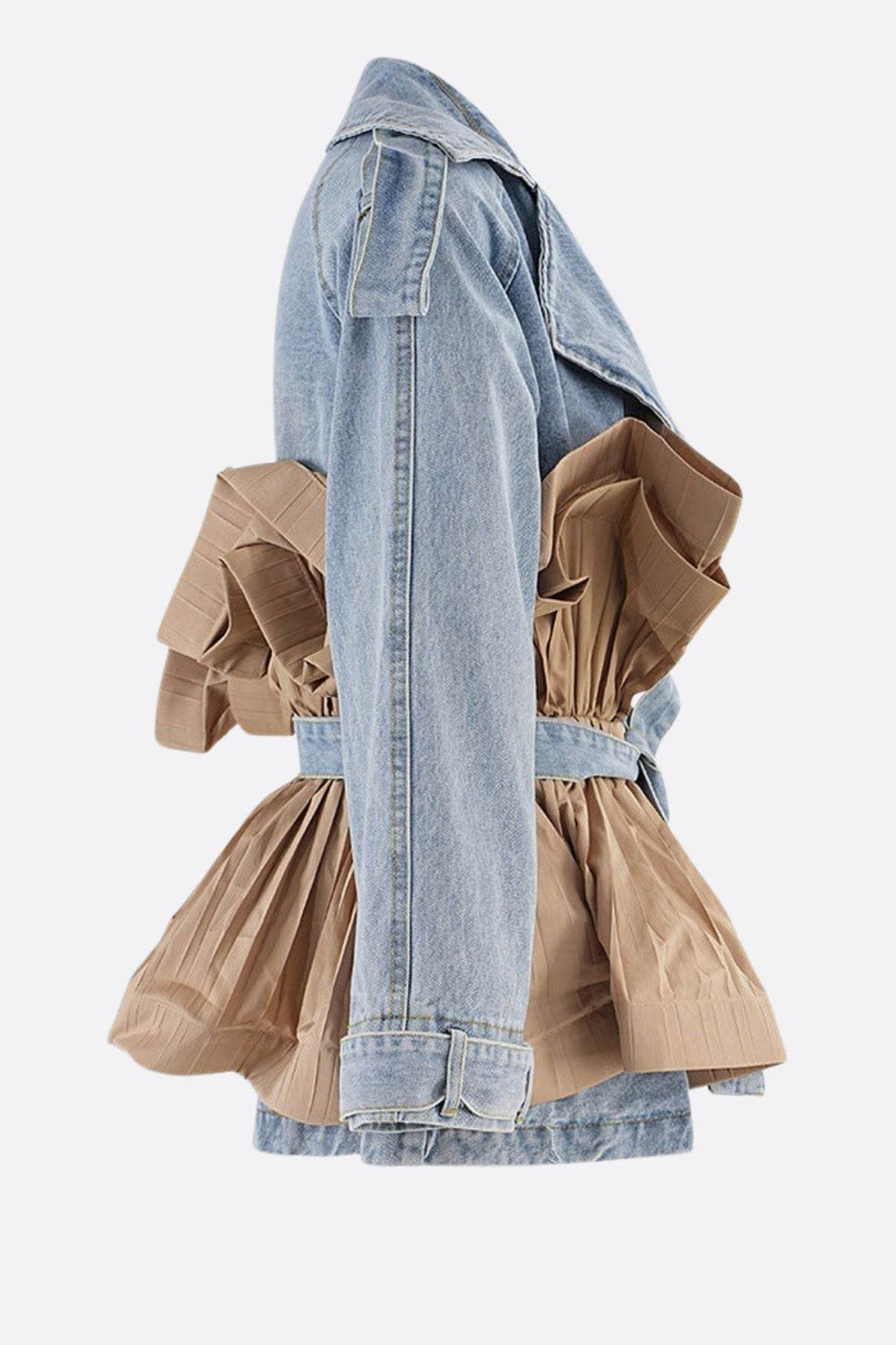 Eine souveräne Jacke mit klarer Haltung. Die ruhige Linienführung wird durch weich fallende Details aufgelockert und verleiht dem Design Tiefe und Eleganz. Der Bindegürtel definiert die Silhouette und sorgt für einen ausgewogenen, selbstverständlichen Look.