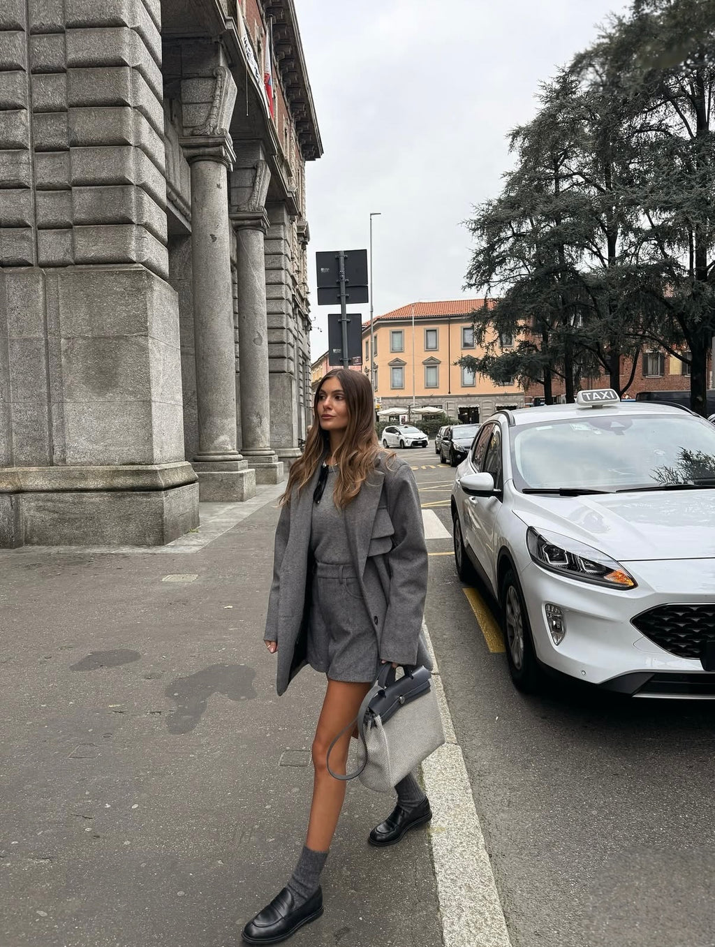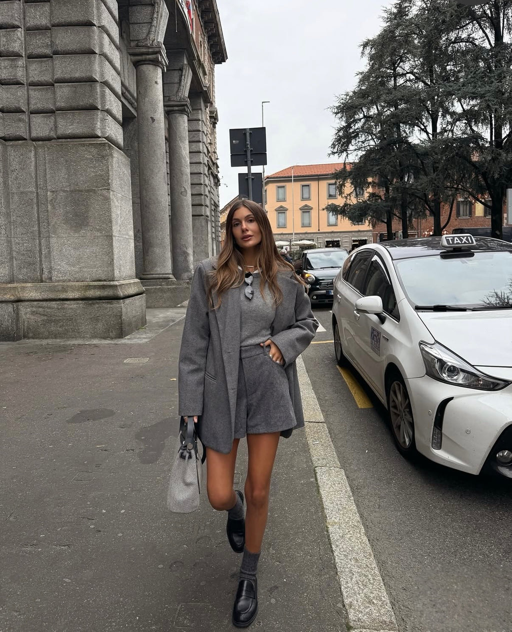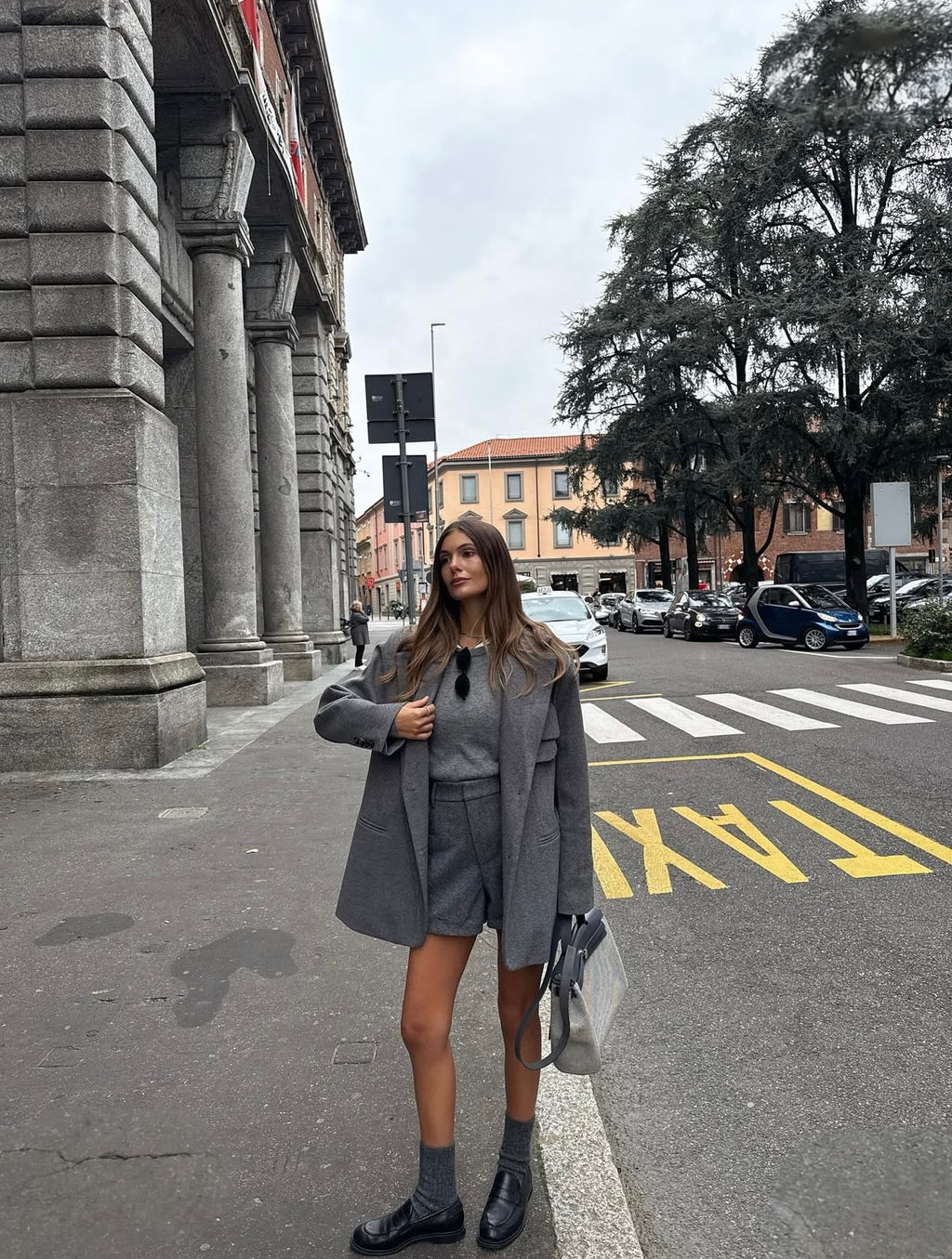STYLING-TIPP: Trage die LIVIA SHORTS mit der LIVIA JACKET und einem schlichten Top in Creme oder Grau – ein harmonischer Ensemble-Look für Tag und Abend.