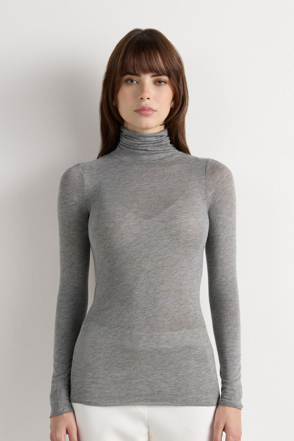 Hellgrau verleiht dem Rollkragenpullover eine moderne Leichtigkeit und wirkt zeitlos sportiv.