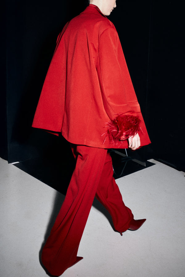 Die RACHEL PANTS präsentieren sich als elegante, weich fließende Hose mit weit interpretiertem Bein und klarer Linienführung. Der hochwertige Stoff sorgt für einen geschmeidigen Fall und verleiht jedem Look eine ausdrucksstarke Präsenz. Die intensive Farbgebung setzt ein selbstbewusstes Statement – stilvoll und zeitlos zugleich. Ideal für hochwertige Blusen, strukturierte Blazer oder Ton-in-Ton-Silhouetten.